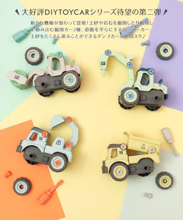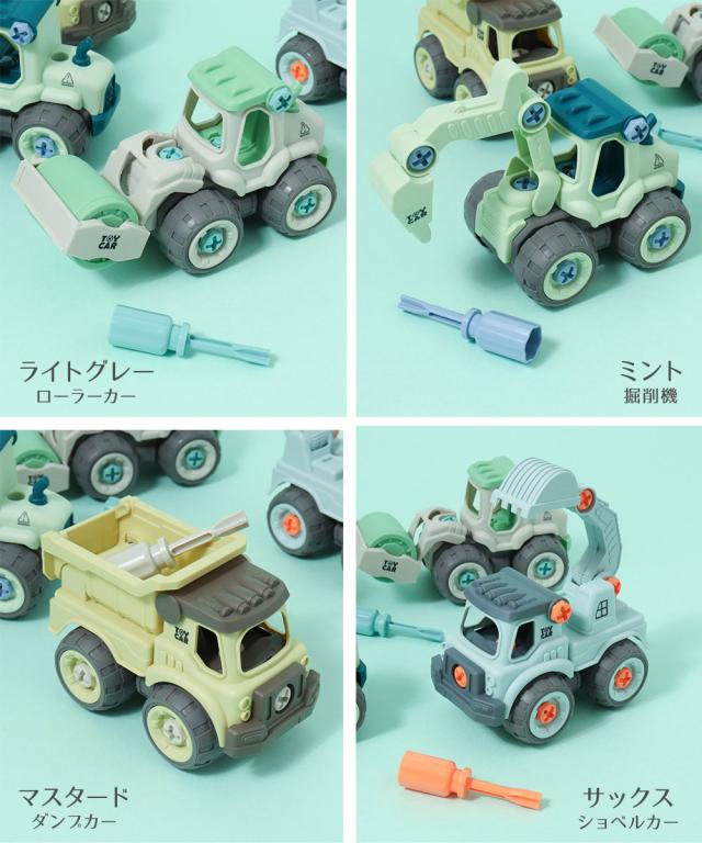 車のおもちゃ 組み立てDIY 重機 掘削カー ローラーカーダンプカー乗り物 ネジ遊び 組み立て 女の子 男の子 工具 ドライバー 誕生日 プレゼント ごっこ遊び 知育玩具 キッズ 知育 FO 電動 DIY TOY CARS パステルカラー 6941043