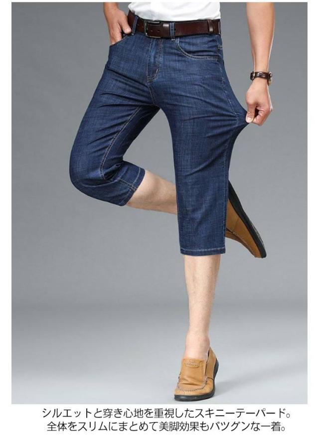 送料無料 薄手 デニムパンツ メンズ クロップドパンツ 7分丈 夏服 カジュアル ストレッチ ジーンズ ストレッチパンツ ズボン ひざ下 春夏 大きいサイズ おしゃれ