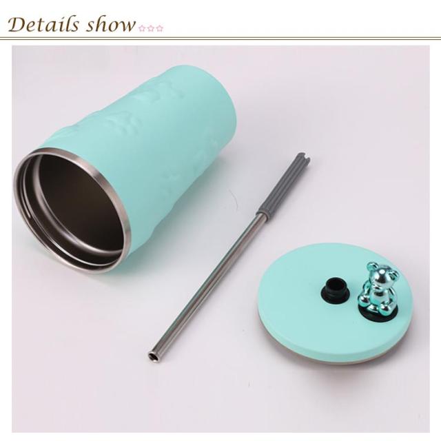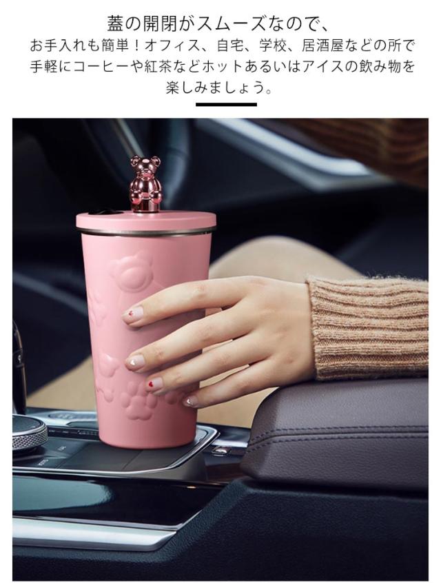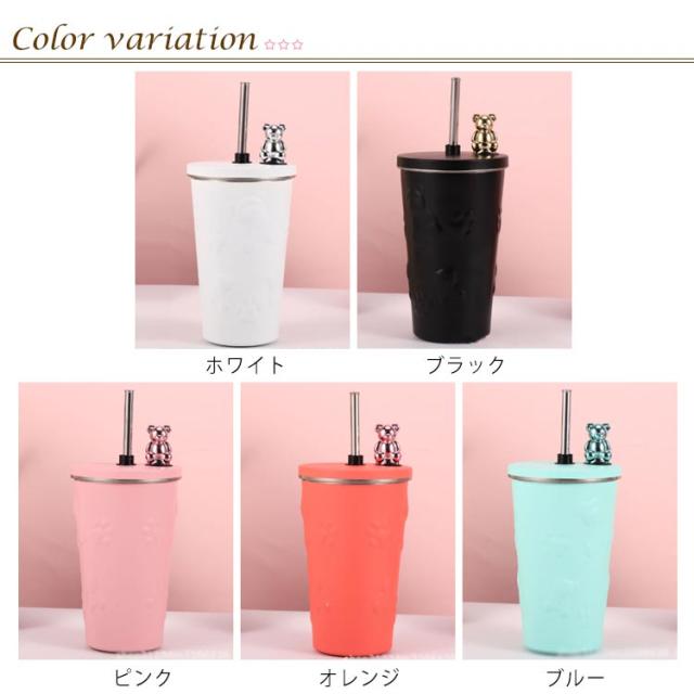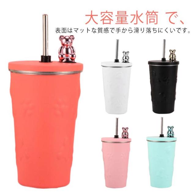 くま タンブラー ストロー付き 蓋付き 熊 600ml 大容量 保温 保冷 水筒 二重構造 真空断熱 ステンレス マグカップ 結露しない 蓋付き スクリュー こぼれない 持ち運び コーヒーカップ かわいい オシャレ ストロー付きタンブラー 通勤 通学