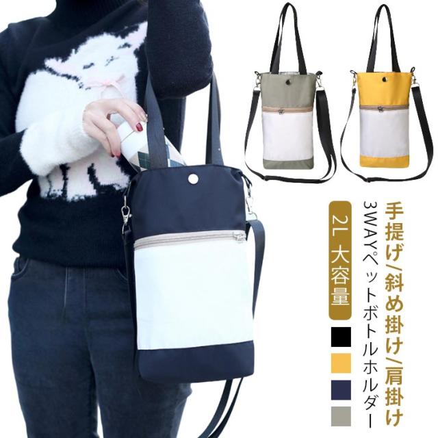 2L ペットボトルホルダー 水筒カバー スマホポーチ 撥水 3way 斜め掛け 傘 スマホ 収納ポーチ 水筒ホルダー 水筒ケース 大きいサイズ 2リットル 2000ml ストラップ タンブラー 長さ調節可能 ショルダー 持ち運び 持ち歩き