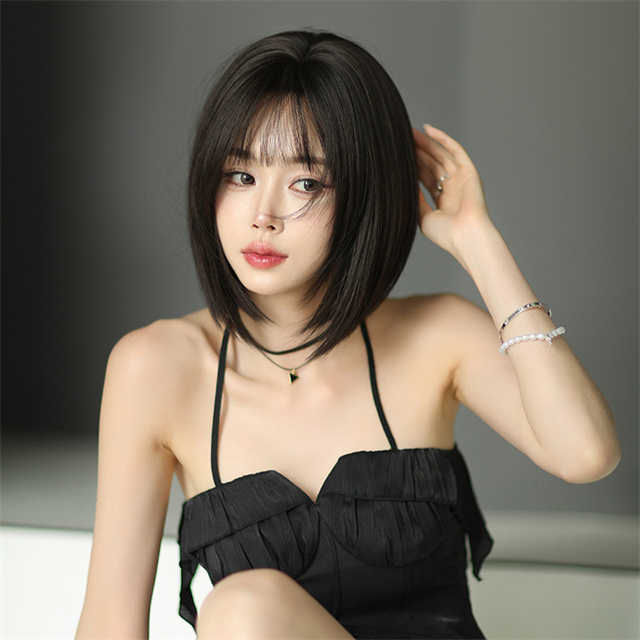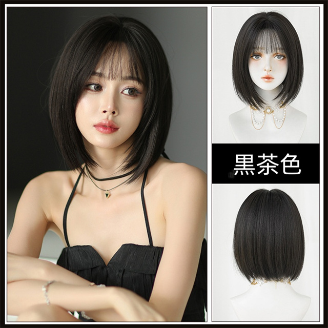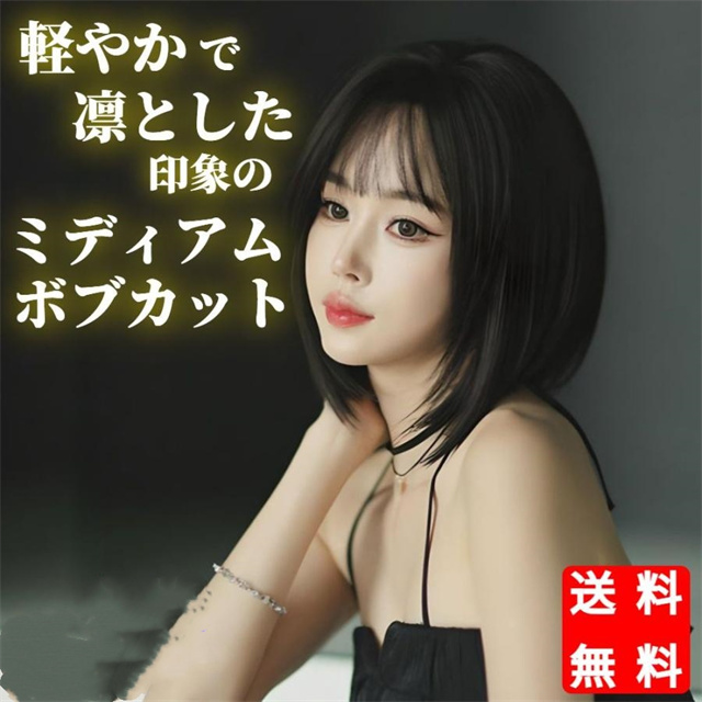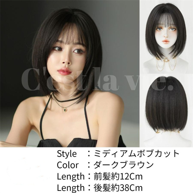 ウィッグ ミディアム ボブ ダーク ブラウン フルウィッグ ネット付き 前髪あり 自然 バレない 普段使い おしゃれ 小顔効果