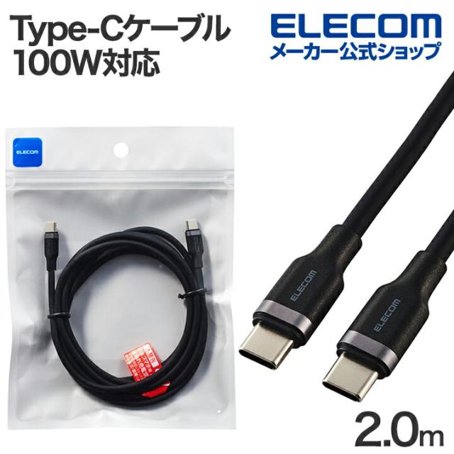 エレコム USB Type-C - USB Type-Cケーブル USB2.0 なめらか USB Power Delivery対応 100W 2.0m ブラック ┃MPA-CCECSS20BK