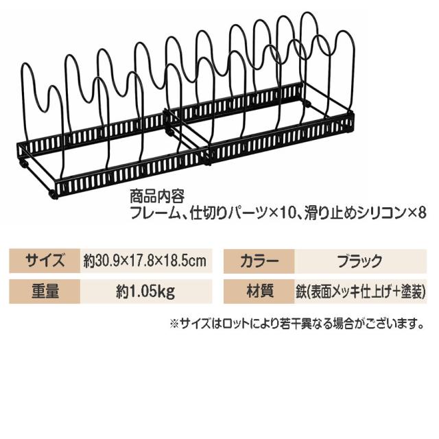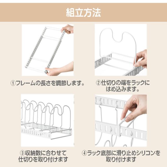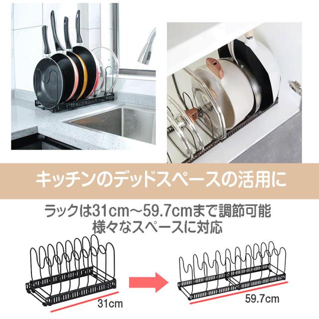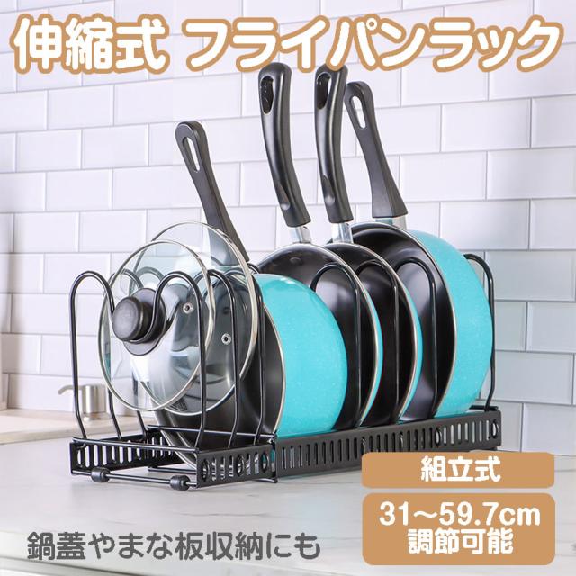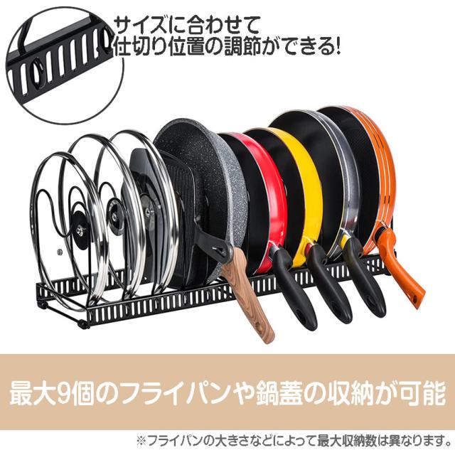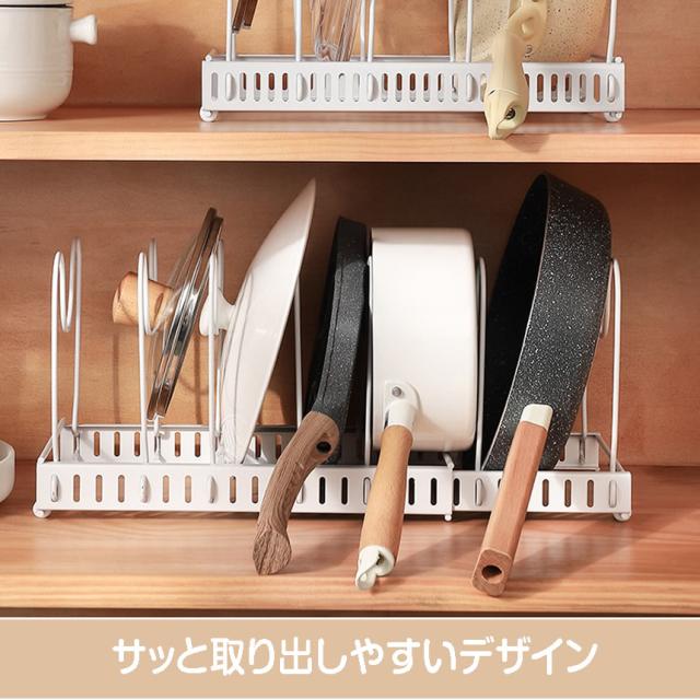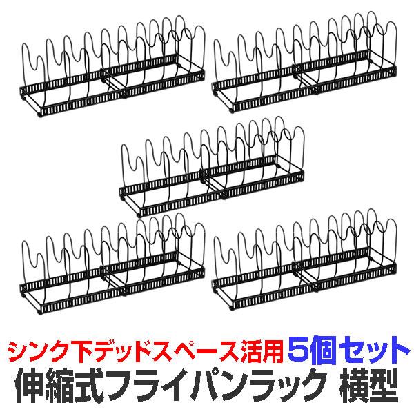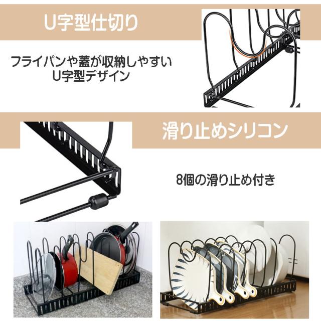 5個セット フライパンラック シンク下 伸縮式 横型 最大9個収納可能 仕切り10個付き キッチン収納 整理棚 立てる収納 キッチン用品 蓋 鍋 FUPAAPAR y-kj2209-15a