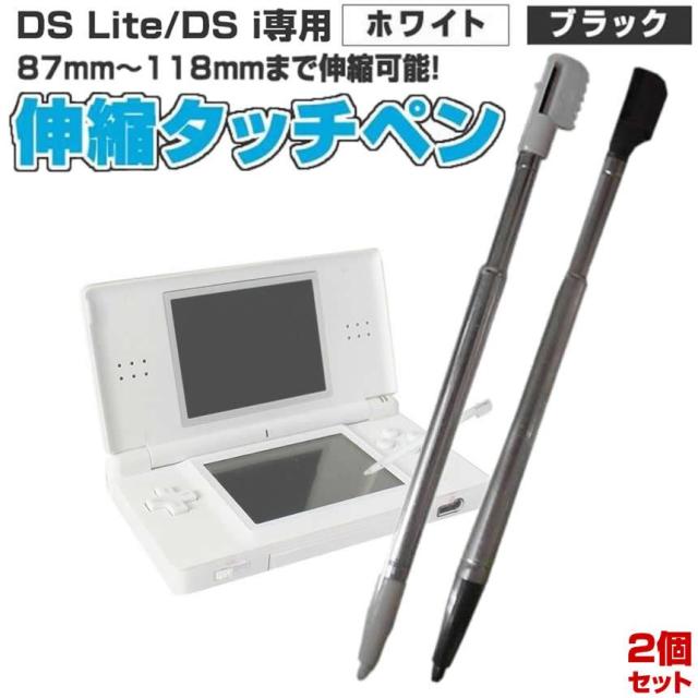 2個セット ゲーム機 タッチペン 伸縮 DSLite Dsi ホワイト/ブラック ゲーム操作 ロングタイプ 87mm〜118mm伸縮 子供 大人 プレゼント お絵描き PE00 y-ij0412-27a
