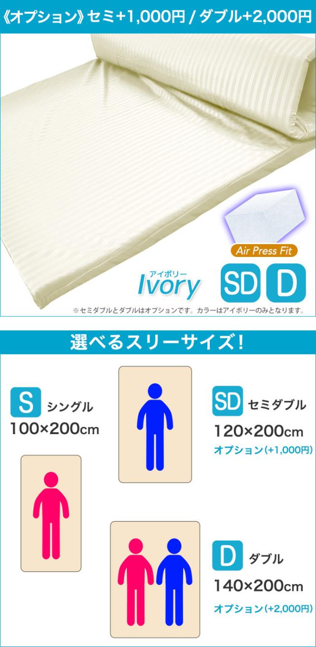 ※セミダブル:約120×200×約3.5cm (製品許容範囲+5%-3%) アイボリー・グレーのみ(オプション+1,000円)