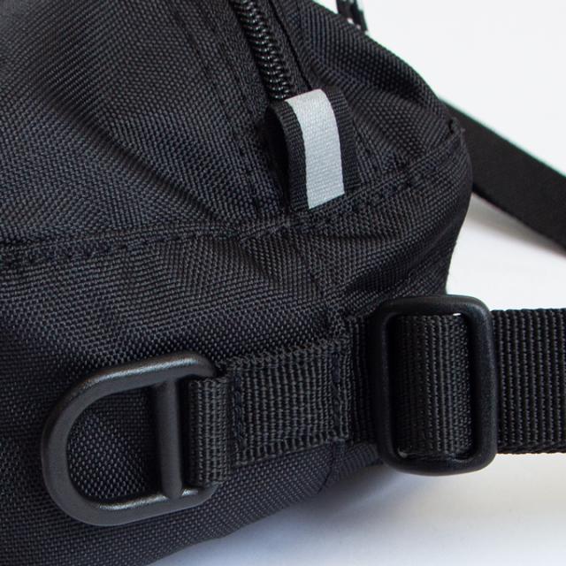 フロントにも別ポケットをつけているので、アイテム毎に収納箇所を分けられる小さくても使えるバッグ。