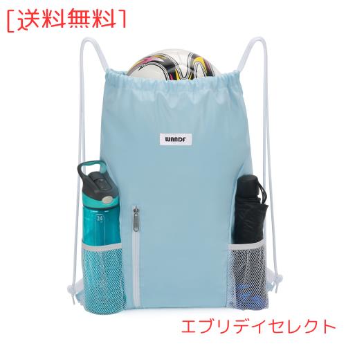 ◆商品名:[WANDF] ジムサック ナップサック 巾着 シューズ収納 防水 軽量 水泳 部活 運動 旅行 … (A-ブルー)