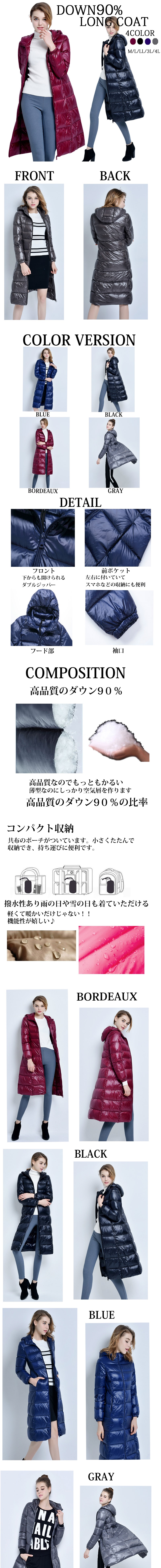 ロングダウンコート【期間限定!初売りセールで7980円 】ダウンコート 大きいサイズの美ラインM・L・LL・3L/ライトダウン軽量ダウンジャケットコートAライン