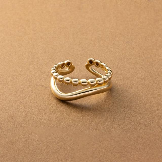 【ゆうパケット送料無料】 ステンレス製 リング 指輪 金属アレルギー つけっぱなし サージカルステンレス レディース オープンリング メタルボール ウェーブ レイヤード風 2連 変形 大人 ゴールド シルバー