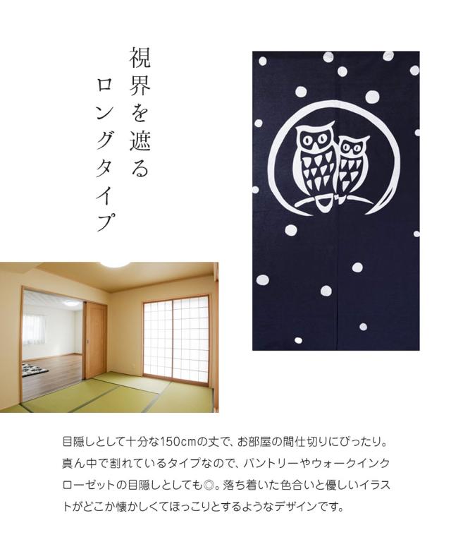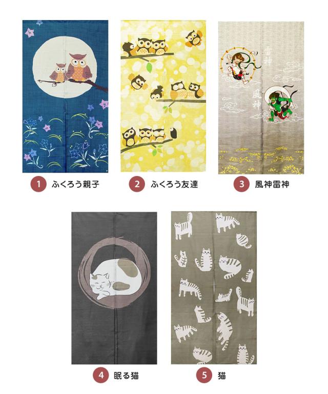 のれん 150cm 丈 暖簾 ノレン 間仕切り インテリア 寝具 収納 カーテン ブラインド 目隠し 温泉 銭湯 可愛い 湯のれん お風呂 ゆ 目隠し 和柄 ロング 幅82cm 縦150cm ギフト プレゼント 和テイスト イラスト かわいい 縁起 動物柄 果物柄 風神雷神 フクロウ 猫 ネコ