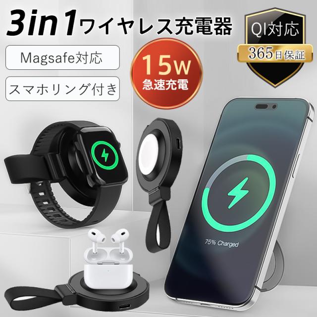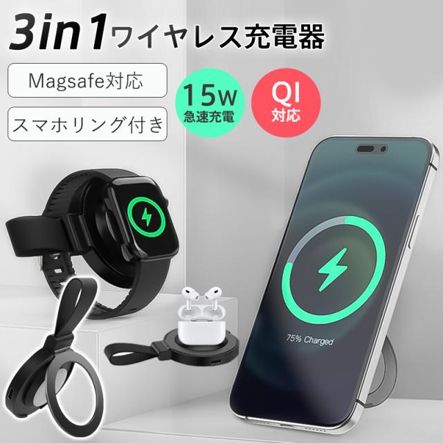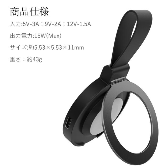 スマホリング ワイヤレス充電器 MagSafe対応 iphone 15 急速充電 15W スマホスタンド 充電器 置くだけ Qi対