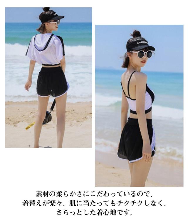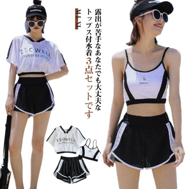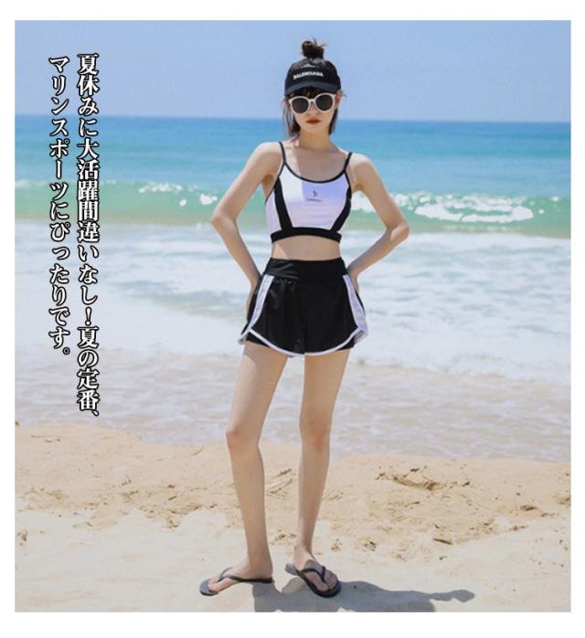 水着 高校生 スクール水着 3点セット レディース 水着 中学生 パッド付き 体型カバー ラッシュガード 中学生 露出控え タンキニ ビキニ 女の子 大きいサイズ セパレート セットアップ 通気性 伸縮性 快適