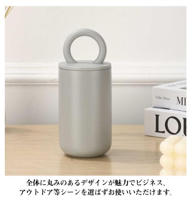 | 丸みのあるフォルムに持ち運びに便利なハンドルつきタンブラー。 ゆるいカーブを描いたハンドルは握りやすく軽く指先に引っ掛けて持ち運ぶ事が出来ます。 全体に丸みのあるデザインが魅力でビジネス、アウトドア等シーンを選ばずお使いいただけます。 直接口に触れる飲み口には、ネジなどの突起物が一切なくとてもやさしい口当たり。 、真空二重構造で温度をキープし、保温・保冷対応なので一年中お使いいただけます。 | |
