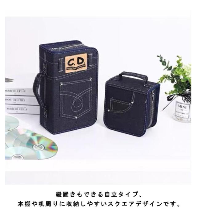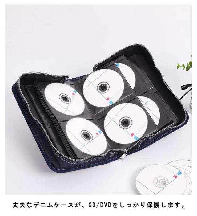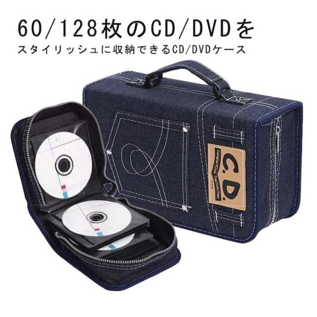 CDケース 持ち運び デニム 60枚収納 DVDケース 丈夫 収納 持ち運び CD収納ケース BDケース Blu-rayケース ディスクファイル プレゼント 大容量 スリム メディアケース 両面収納 保護 ハンドル付き かわいい ファスナーケース ギフト 128枚収納