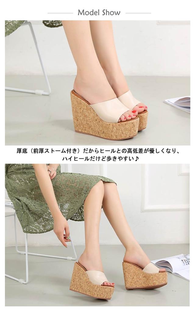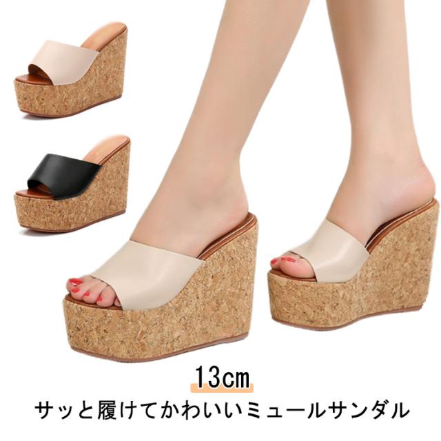 サボ ウェッジソール 大きいサイズ 13cm レディース ヒール ミュール サンダル 13cm ウェッジソールサンダル 夏 美脚 厚底ミュール ハイヒール ミュールサンダル 歩きやすい 疲れない ブラック ベージュ