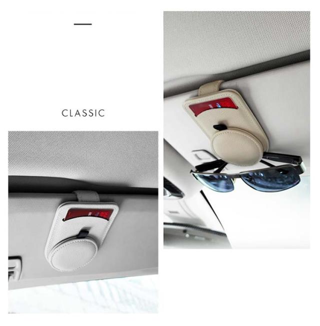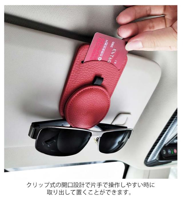 | 機能性×デザイン性を兼ね備えたサングラスホルダーです。 マットな質感と上品なレザー調のデザインにより、車内に高級感を演出します。 メガネをサンバイザーにしっかりと固定できるため、運転中にサングラスが落下するのを防ぎます。 運転の妨げにならない薄型設計を採用!運転の安全性が確保されます。 クリップ式の開口設計で片手で操作しやすい時に取り出して置くことができます。 メガネだけでなく、カード、通行券、駐車券、メモ用紙などの小物も収納できます。 | |