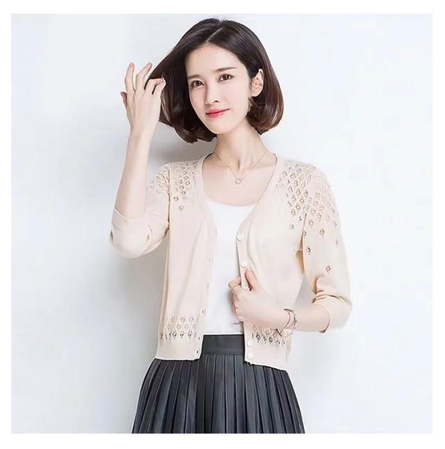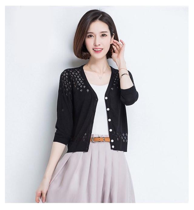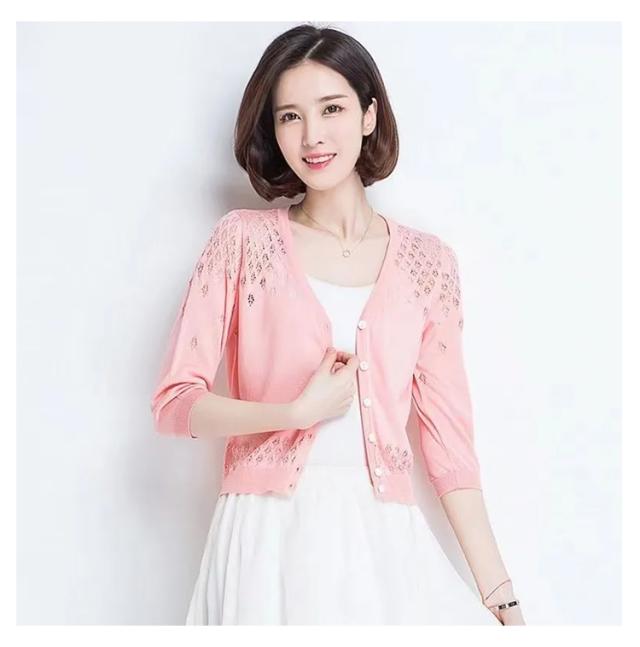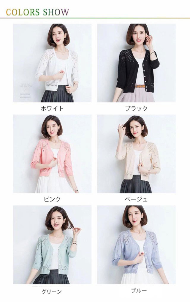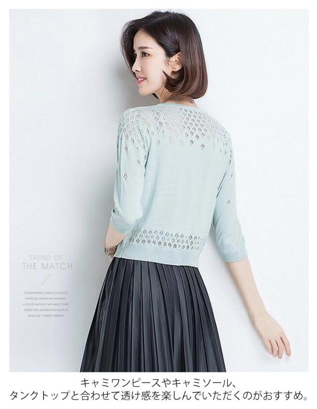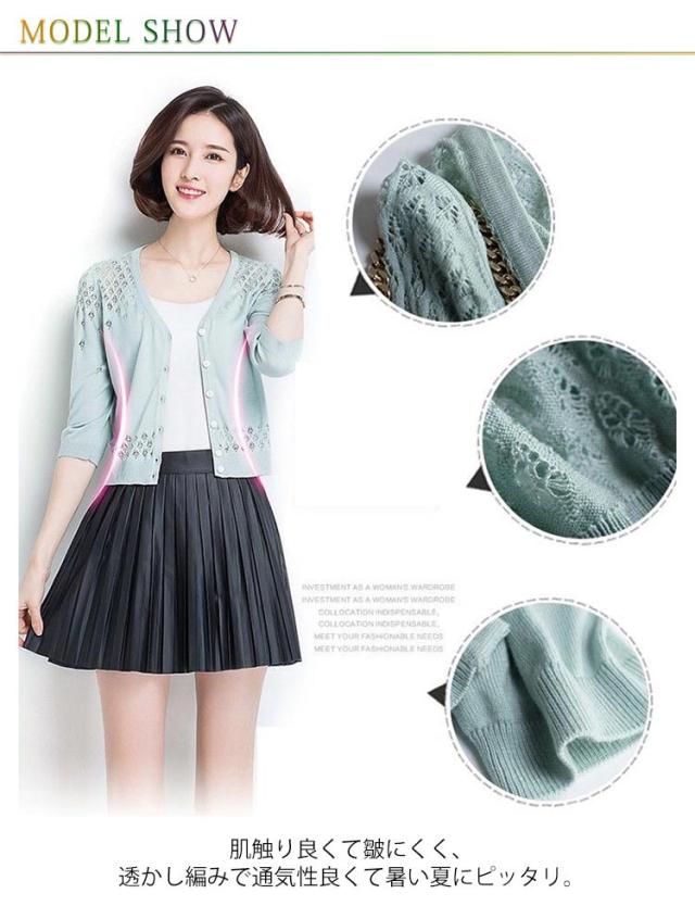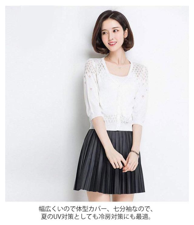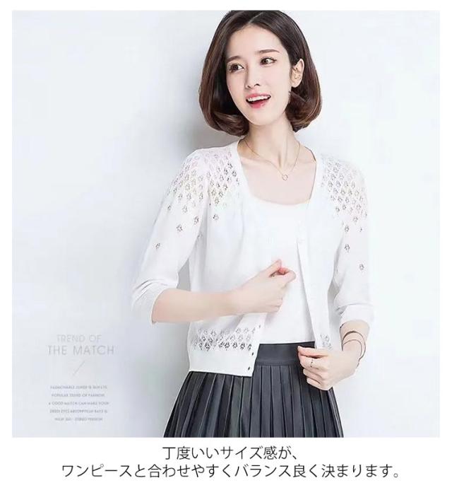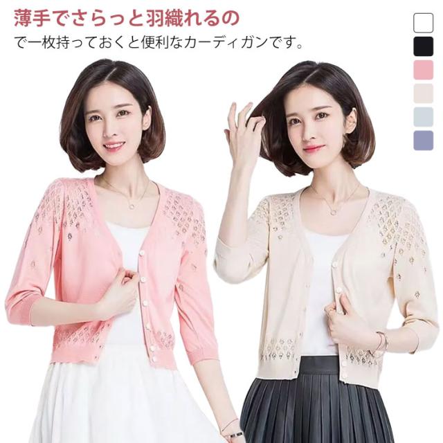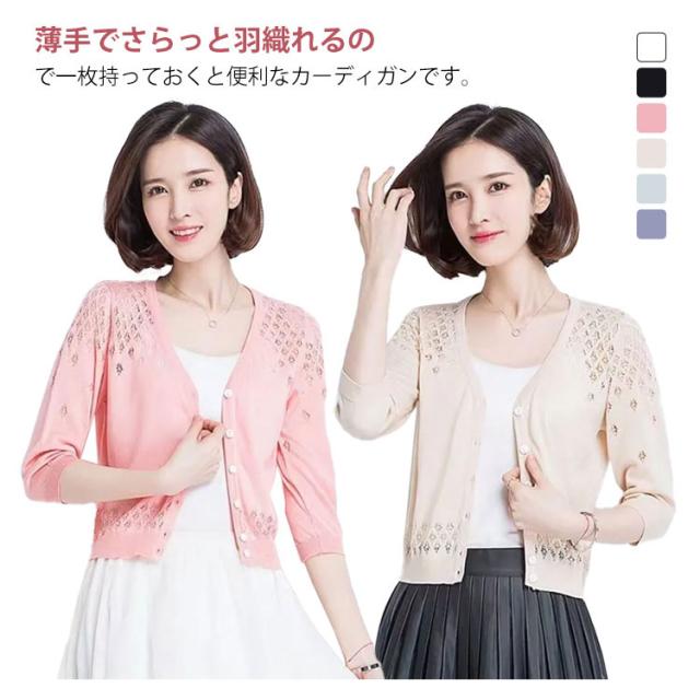 カーディガン 透かし編み 前開き レディース 七分袖 羽織 薄手 サマーカーディガン ボレロ風 ショート丈 ボレロ風 Vネック 春夏 ショート丈 エレガント 体型カバー 通勤 普段着 お出かけ キレイめ