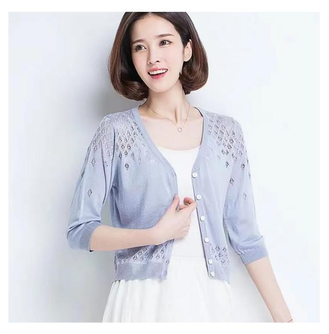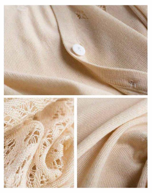 | 薄手でさらっと羽織れるので一枚持っておくと便利なカーディガンです。 肌触り良くて皺にくく、透かし編みで通気性良くて暑い夏にピッタリ。 キャミワンピースやキャミソール、タンクトップと合わせて透け感を楽しんでいただくのがおすすめ。 幅広くいので体型カバー、七分袖なので、夏のUV対策としても冷房対策にも最適。 丁度いいサイズ感が、ワンピースと合わせやすくバランス良く決まります。 | |