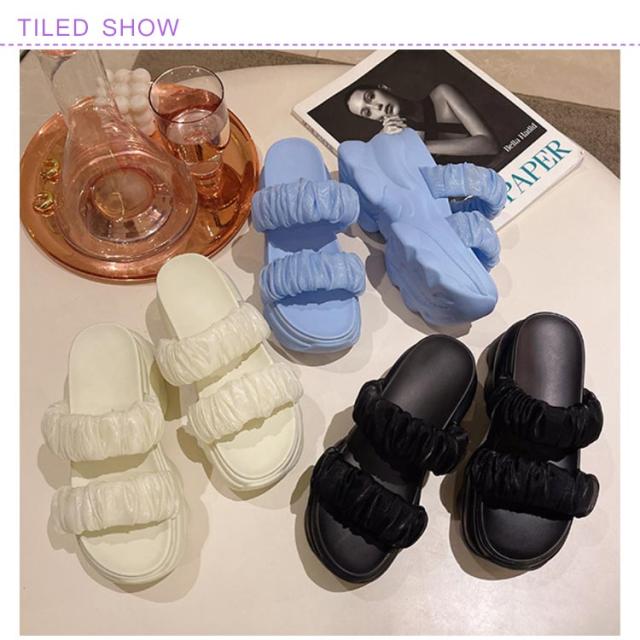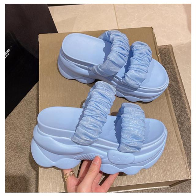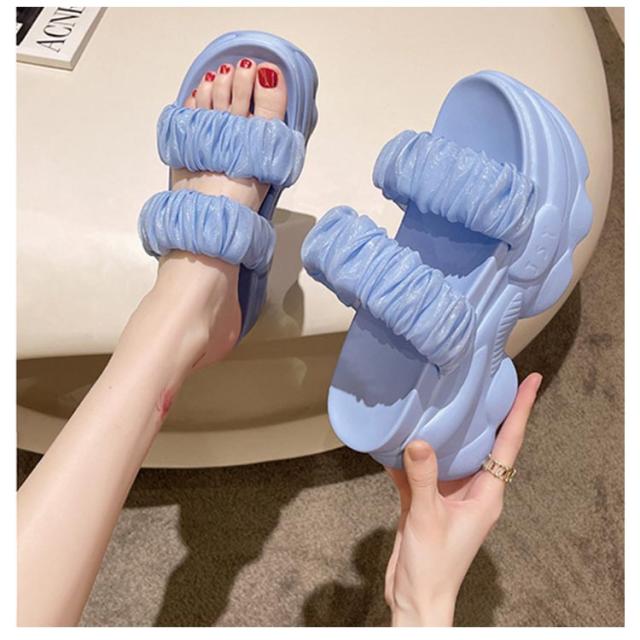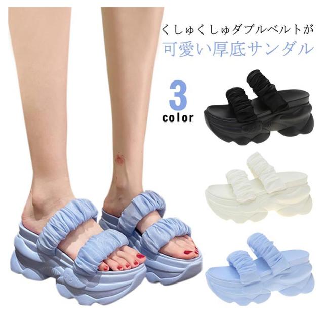厚底サンダル レディース 痛くない 歩きやすい ダブルベルト サンダル 厚底 7cmヒール ウェッジソール つっかけ 美脚サンダル 可愛い 旅行 くしゅくしゅ
