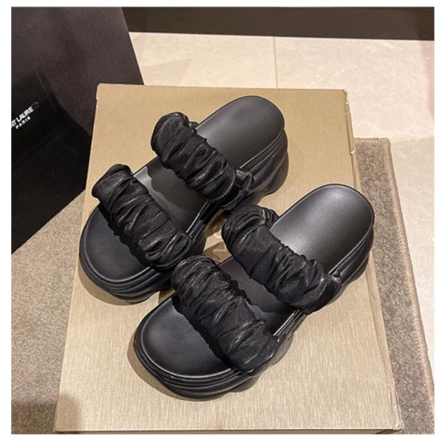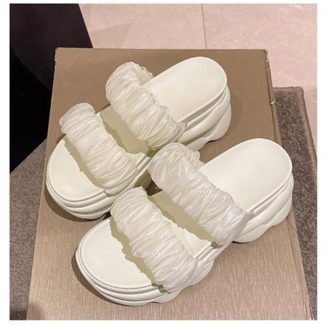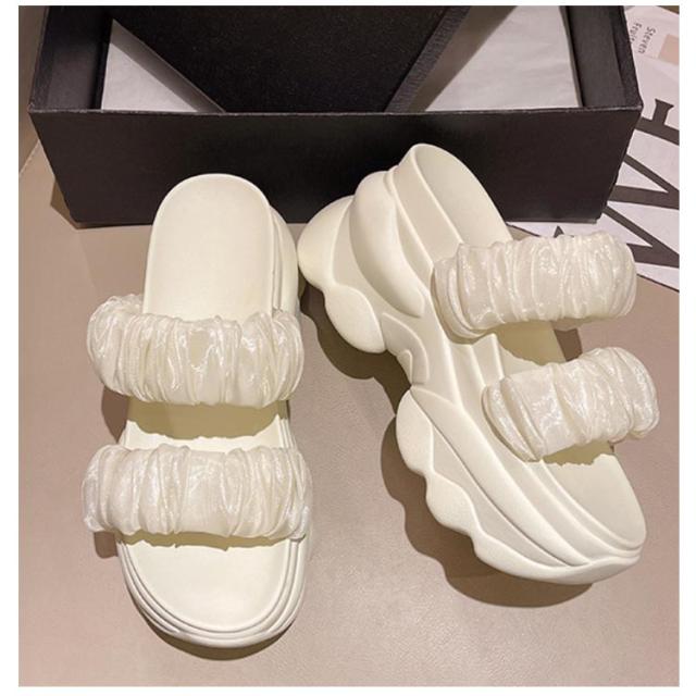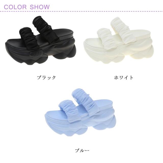 | くしゅくしゅダブルベルトが可愛い厚底サンダル。 低身長さんも嬉しい7cmのソールで足首ほっそり、スタイルUP叶います。 つま先からかかとにかけて高低差の少ないプラットフォームタイプなので、安定感があって履き心地も抜群です! | |