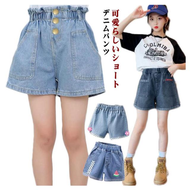 ズボン キッズ キュロット 夏着 子供服 デニム 子供 デニム 半ズボン ハーフパンツ デニムショートパンツ 子供服 ワイドパンツ ジュニア おしゃれ ボトムス ガールズ ガウチョパンツ ショートパンツ 女児用 こども 可愛い カジュアル