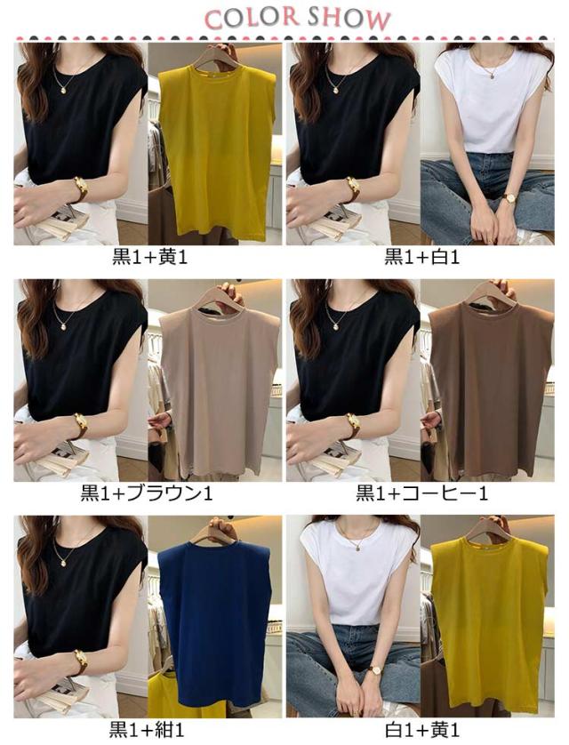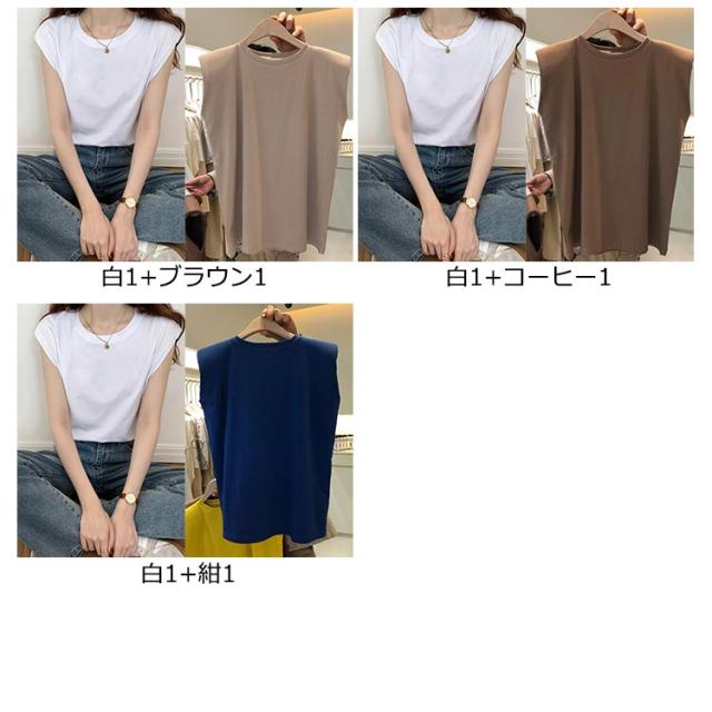 2枚セット!ノースリーブtシャツ インナー 着痩せ シンプル ノースリーブ tシャツ 柔らか インナー 着まわし 丸首 トップス 夏 スリーブレス ティーシャツ ゆったり クルーネック フレンチスリーブ 2枚セット!ノースリーブtシャツ Tシャツ 重ね着 涼しい レディース 春 夏 秋