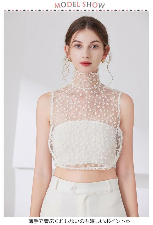 シースルー レディース タンクトップ 送料無料 ハイネック インナー レース 立て襟 付け襟 白 ベージュ トップス 付け襟 つけ襟 レディース 総レース フラワーレース ハイネック 折り襟 透かしレース