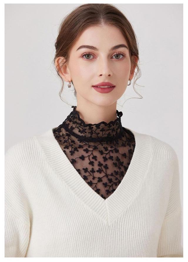 | 総レースのデザインがエレガント。 重ね着風コーデを気軽に楽しめるつけ襟です♪ 薄手で着ぶくれしないのも嬉しいポイント◎ いつものコーデにプラスするだけで、おしゃれに決まる♪ | |