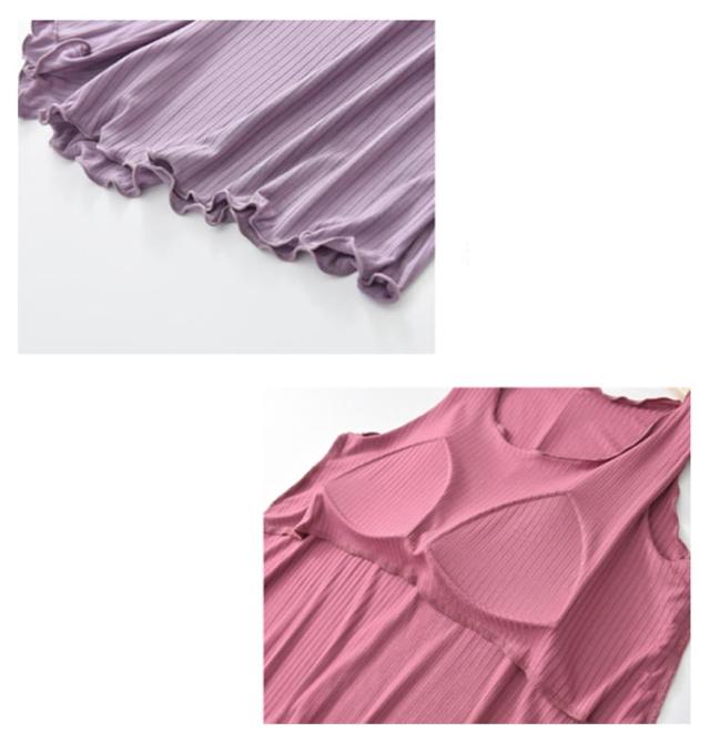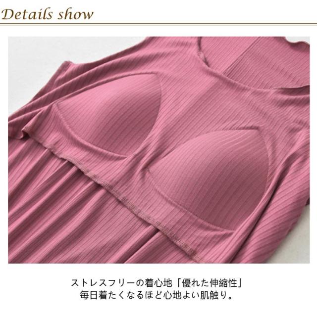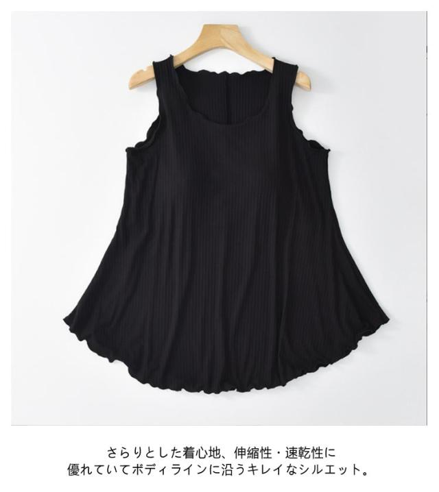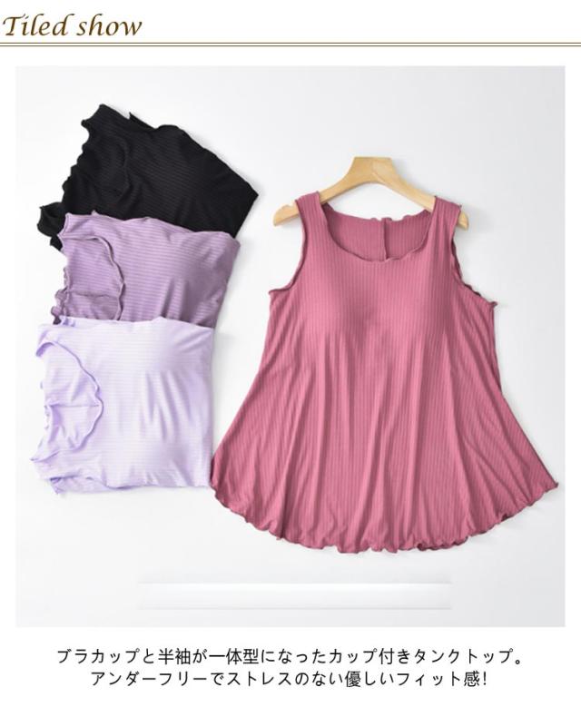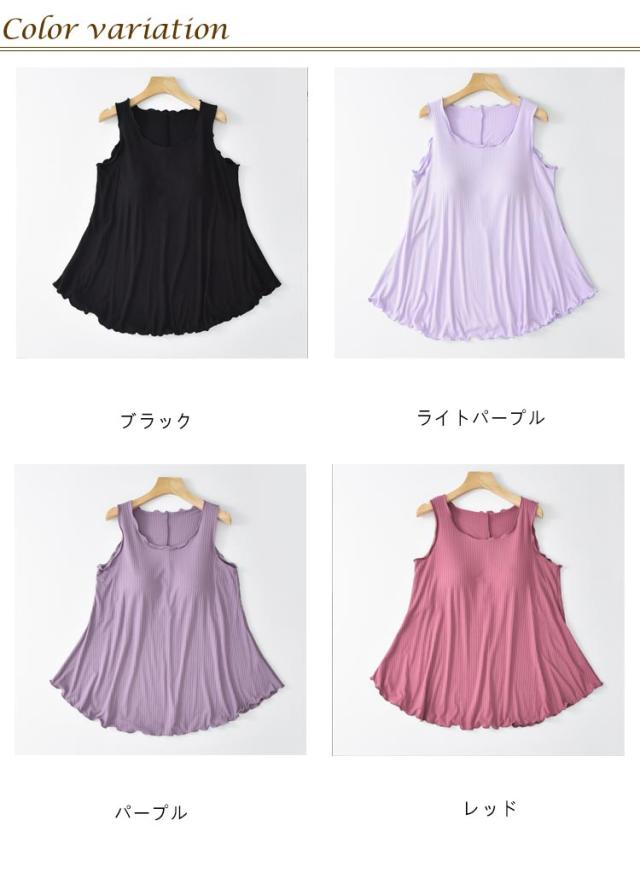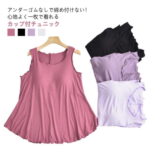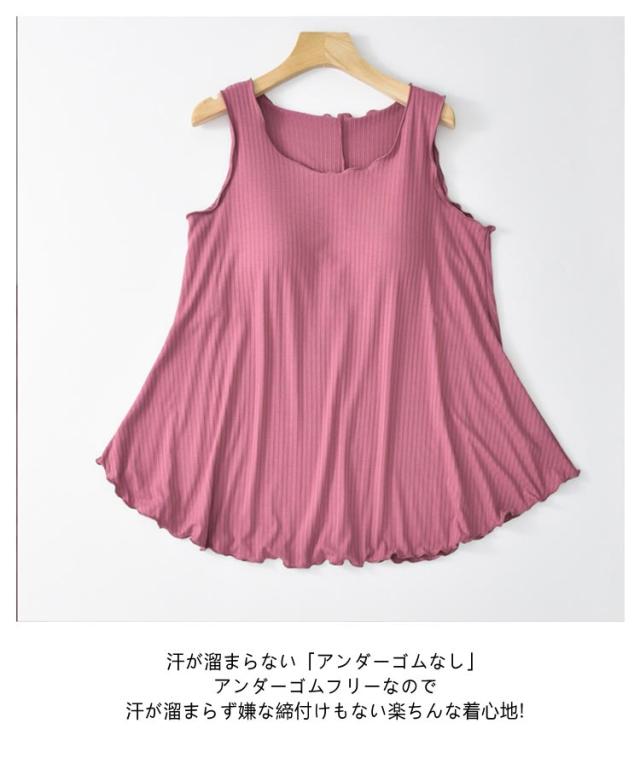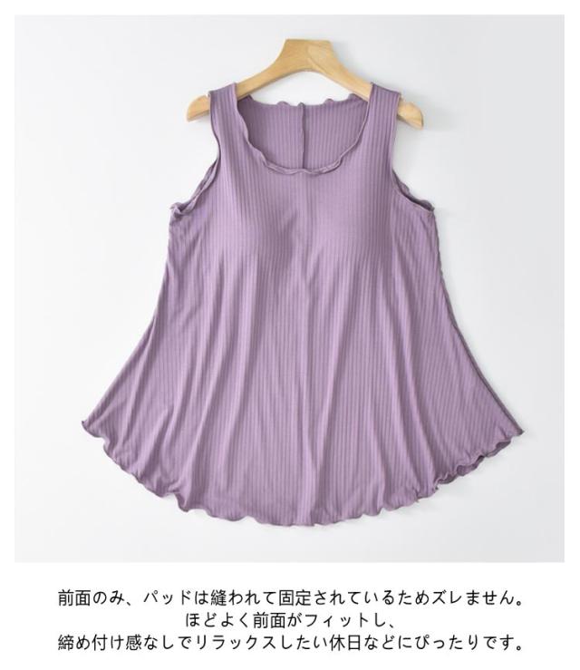 ルームウェア トップス チュニック タンクトップ レディース リブ カップ付き 部屋着 フレア裾 ゆったり タンクトップ ゴム無し 袖なし 袖無し 締め付けない フリル カップ付 インナー 夏 前のみ 背中 ゴムなし アンダーゴムなし ブラトップ 丸首 大きいサイズ Aライン