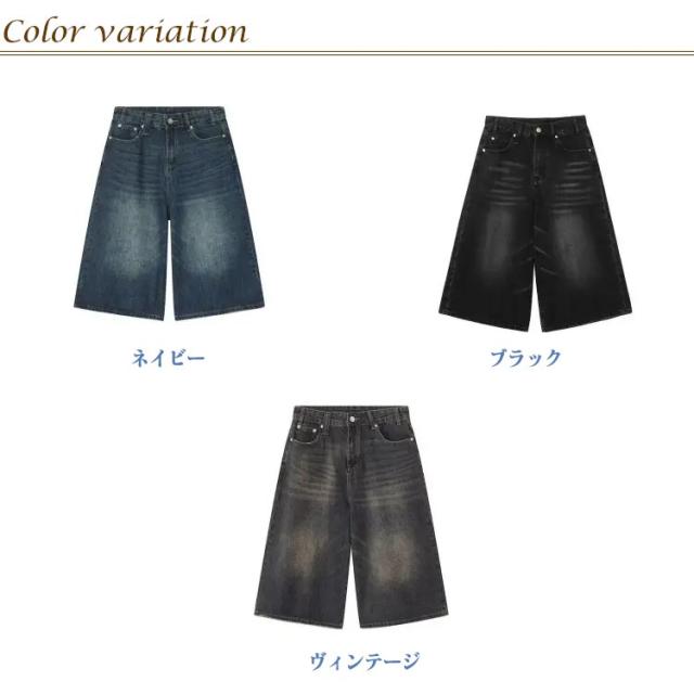 デニムパンツ 7分丈 ショートパンツ ハーフパンツ メンズ ジーンズ ジーパン ワイドパンツ ヴィンテージ風 膝下 ひざ下 クロップドパンツ ストリート系 ヒップホップ 個性派 衣装 おしゃれ