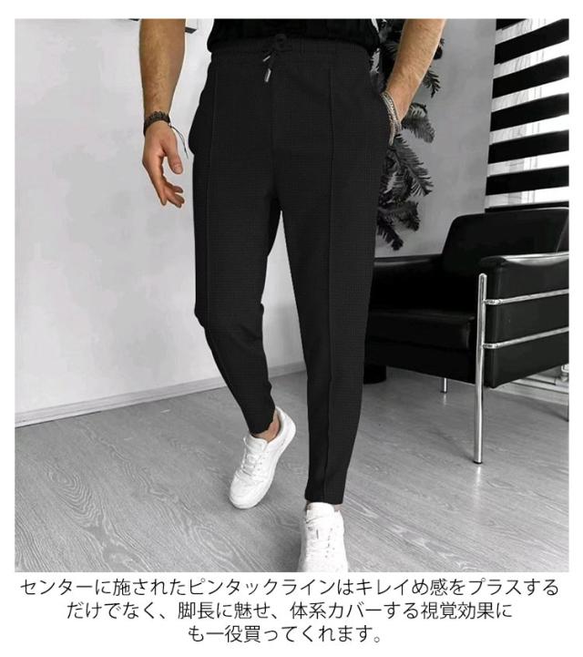 大きいサイズ スウェット ワッフル メンズ きれいめ ボトムス ジャージーパンツ スウェットパンツ イージーパンツ ゆったり カラーパンツ ワッフル ストレッチ ロング ゴム ワイド テーパードパンツ ずぼん 細身 韓国