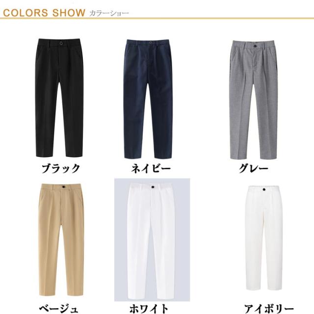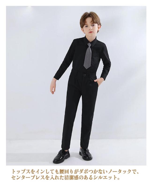 | 冠婚葬祭や卒業式などのオケージョン用にも、通学やお出かけにも、幅広く活躍するスラックス。 トップスをインしても腰回りがダボつかないノータックで、センタープレスを入れた清潔感のあるシルエット。 型くずれ・着くずれしづらいポリエステル素材だから、長時間の着用にも安心してお使いいただけます。 卒園・入学式や、結婚式・七五三と様々なセレモニーシーンはもちろん、ニットやシャツと合わせてカジュアルダウンさせたスタイリングも◎。 | |