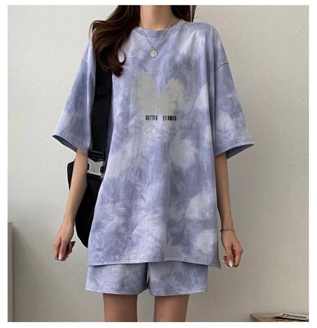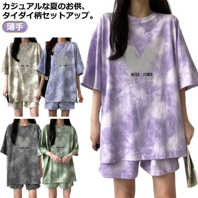 レディース セットアップ ハーフパンツ タイダイ柄 パンツ メンズ ゆったり パンツ ルームウェア タイダイ柄 総柄 部屋着 ショートパンツ 大きめ tシャツ 運動 薄手 半袖 Tシャツ トップス セットアップ 春 夏 短パン トレーナー ナイトウェア 寝巻き ジャージ