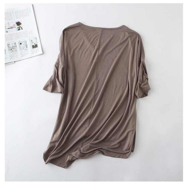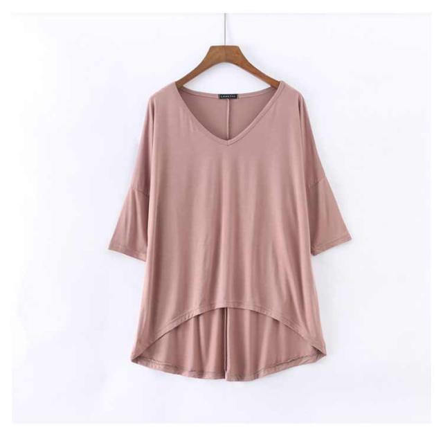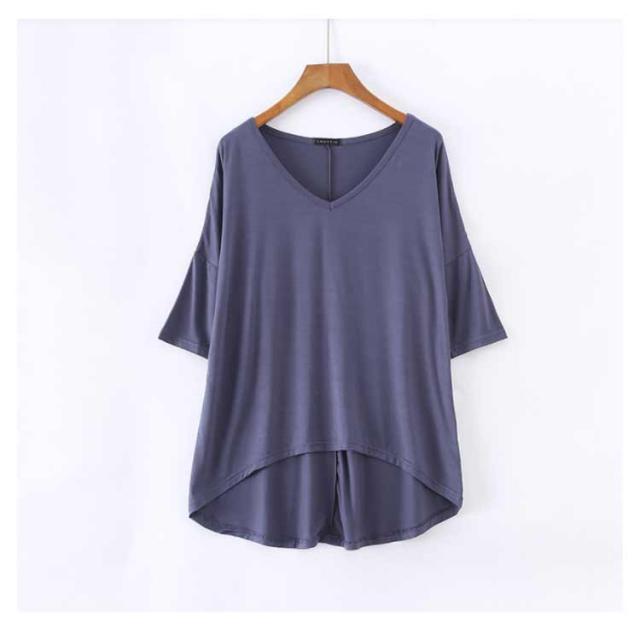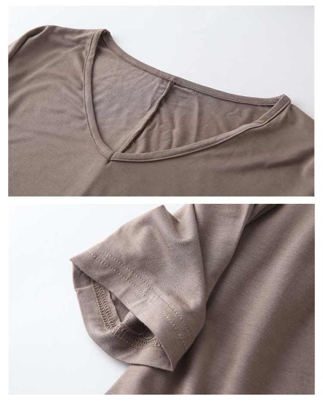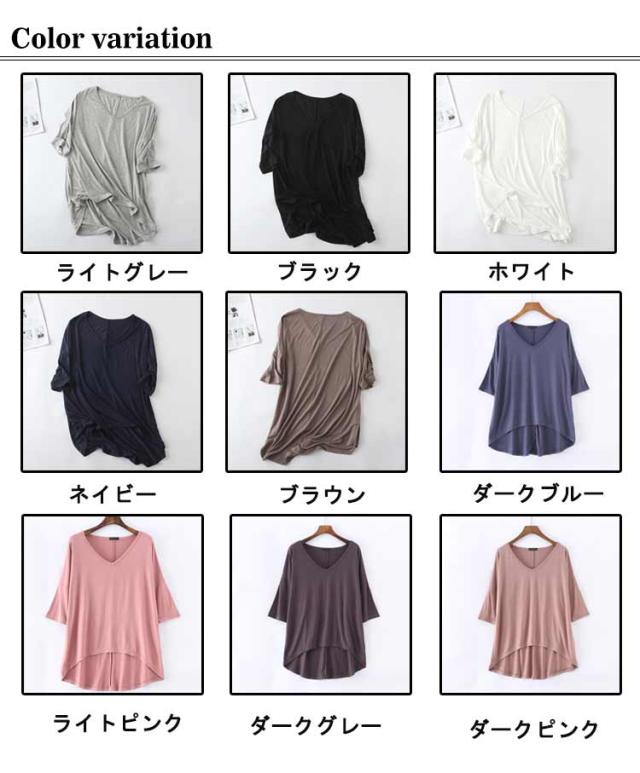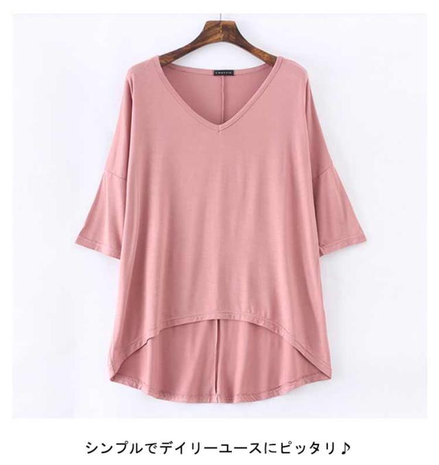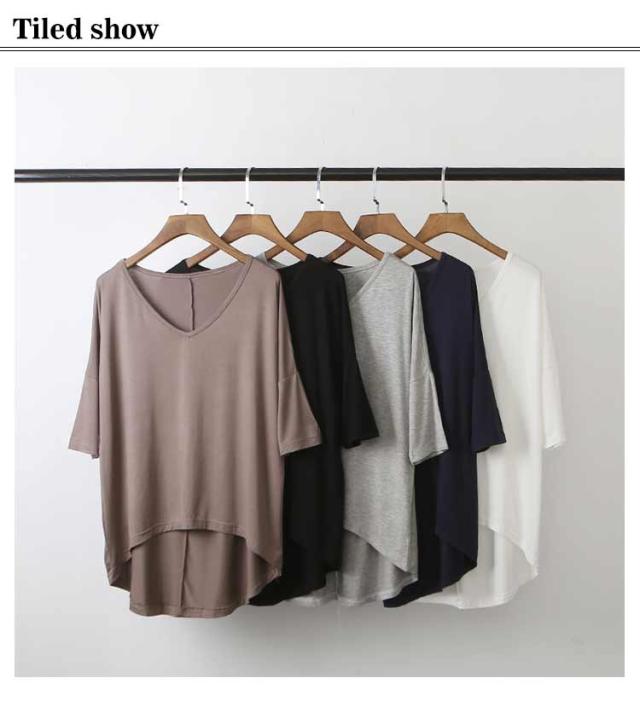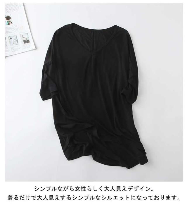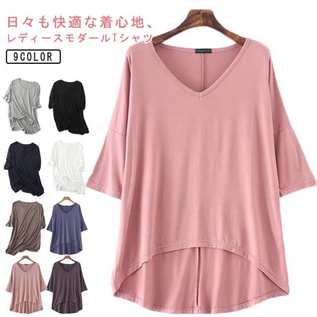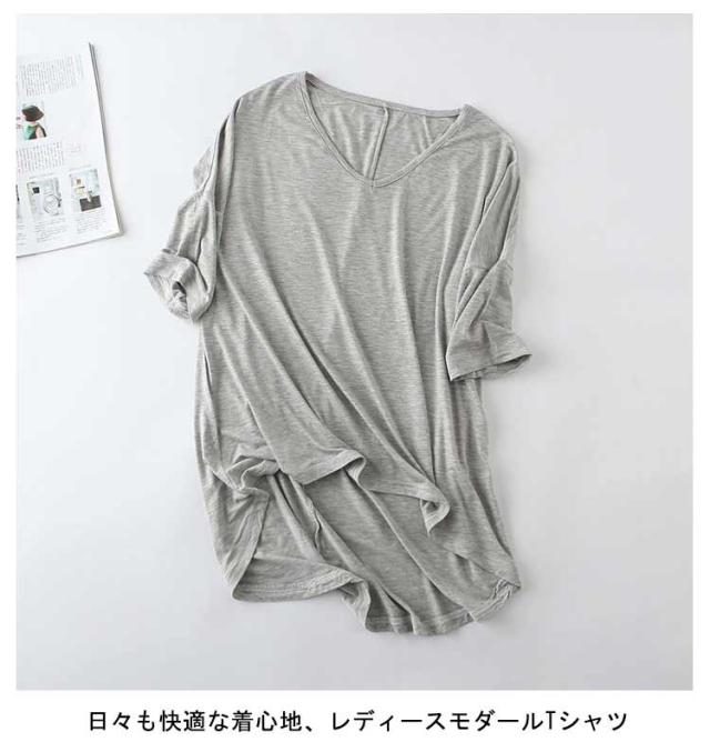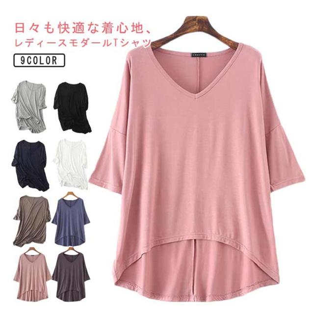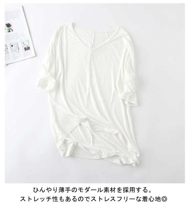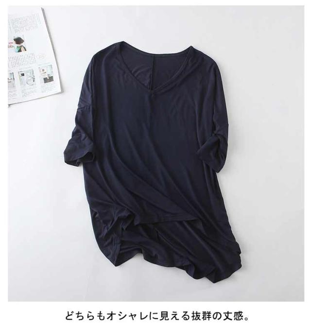 レディース Tシャツ tシャツ シンプル 体型カバー カットソー 夏 ロング丈Tシャツ トップス 涼しげ 無地tシャツ チュニック レイヤード Vネック 半袖 ゆったり インナー 夏 モダール Tシャツ 前後差 お洒落 カジュアル風
