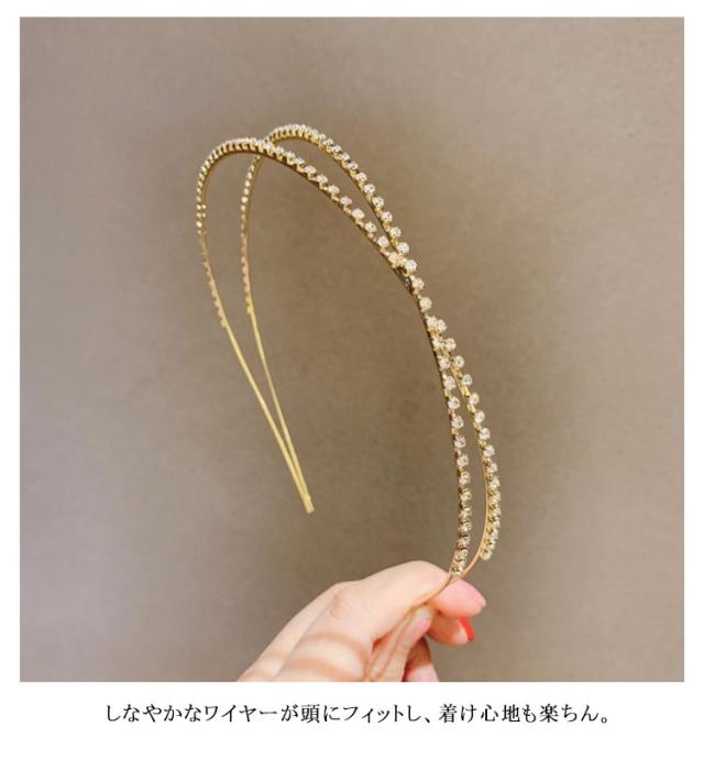 スリム ヘアアクセサリー キラキラ ヘッドドレス クロス 華奢 二重 2連 カチューシャ ラインストーン 細い シンプル 大人カジュアル 細め ヘッドアクセ レディース オフィス カチューシャ キッズ 子供 女の子 結婚式 発表会