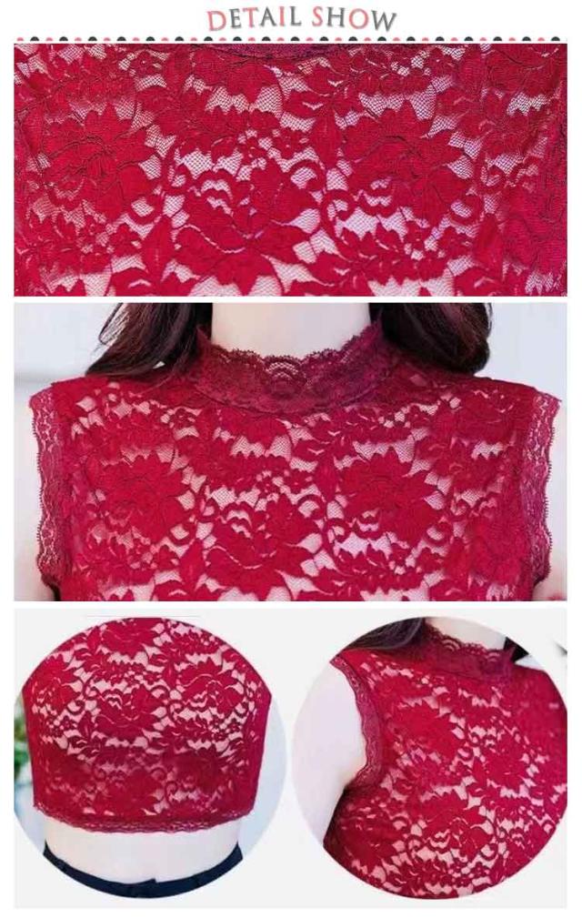 3枚入り!つけ襟 シースルー 総レース 立襟 重ね着用 ハイネック 付け襟 レディース ノースリーブ ブラック アクセント 透け感 女性用 婦人用 偽の襟 可愛い おしゃれ きれいめ 黒 白 ワインレッド フェイクカラー