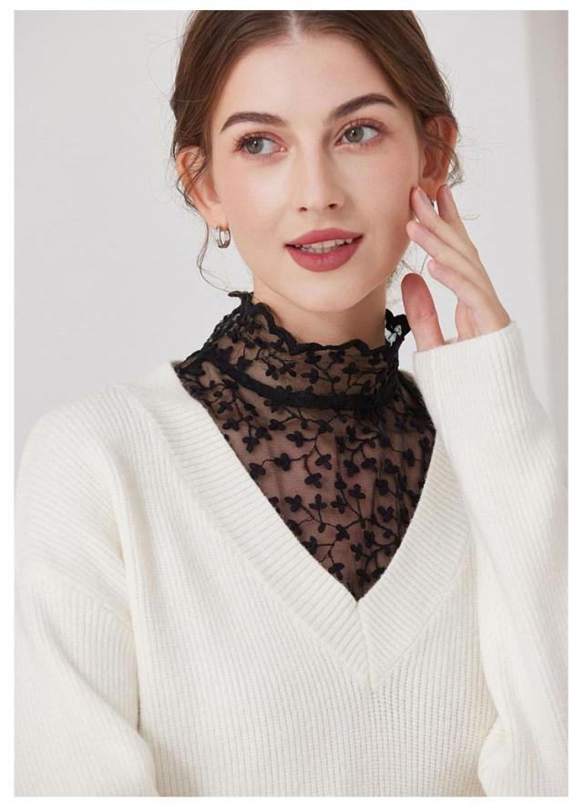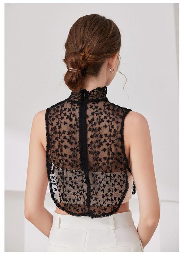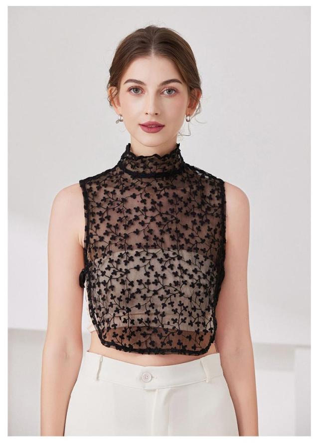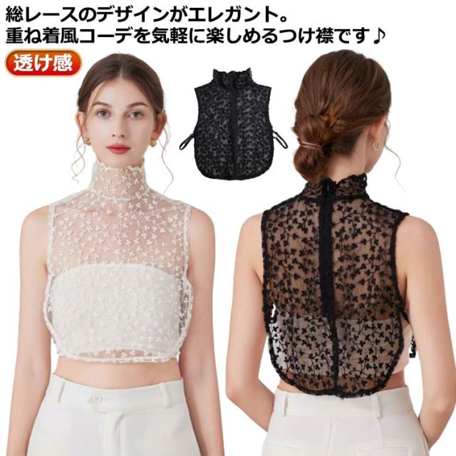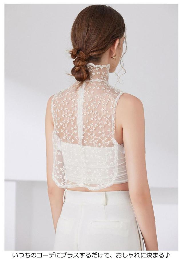 シースルー 白 ベージュ インナー タンクトップ ハイネック 付け襟 立て襟 付け襟 トップス 送料無料 レディース レース レディース つけ襟 総レース フラワーレース ハイネック 折り襟 透かしレース