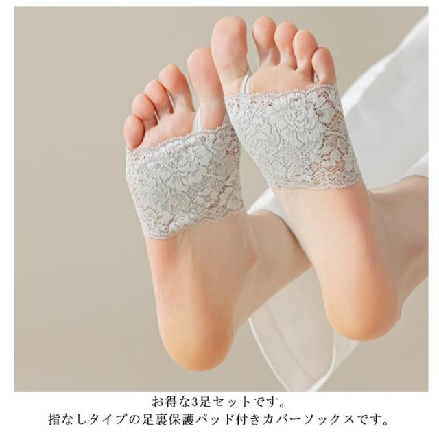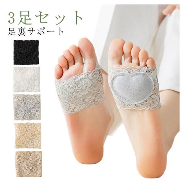 前足クッション レース靴下 靴下 ハーフソックス 足裏パッド 足裏サポーター 3足セット 保護パッド パッド レディース 保護 つま先クッション サポーター 靴下 全5色 足ケア 足の裏 レース 足ムレ防止 痛くない ずれない 靴ずれ インソール