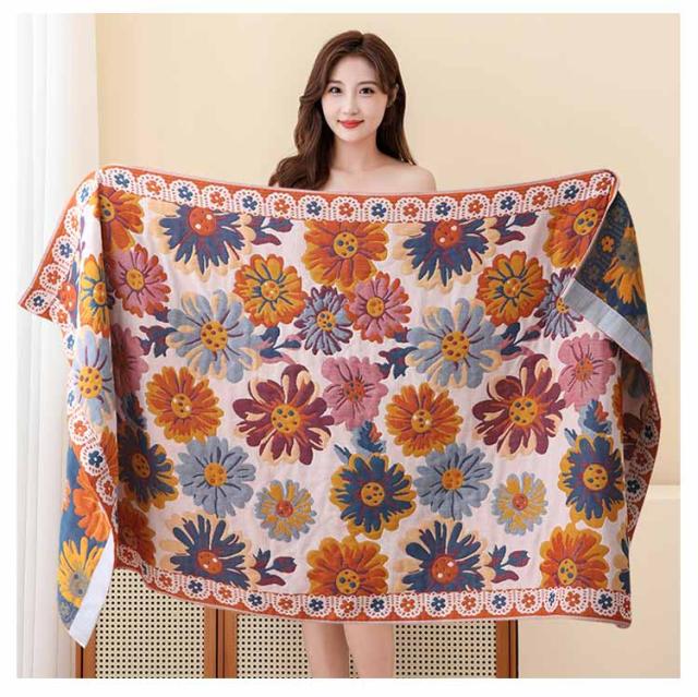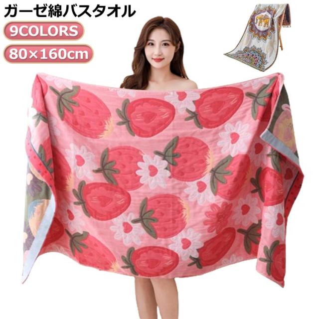 キャラクター バスタオル ガーゼ 夏用 ガーゼ ブランケット 北欧 おしゃれ 綿 タオルブランケット 大判 タオル ジャガード バスタオル オーバーサイズ バスタオル ガーゼ コットン アウトドア キャンプ ビーチ プール イチゴ柄 花柄
