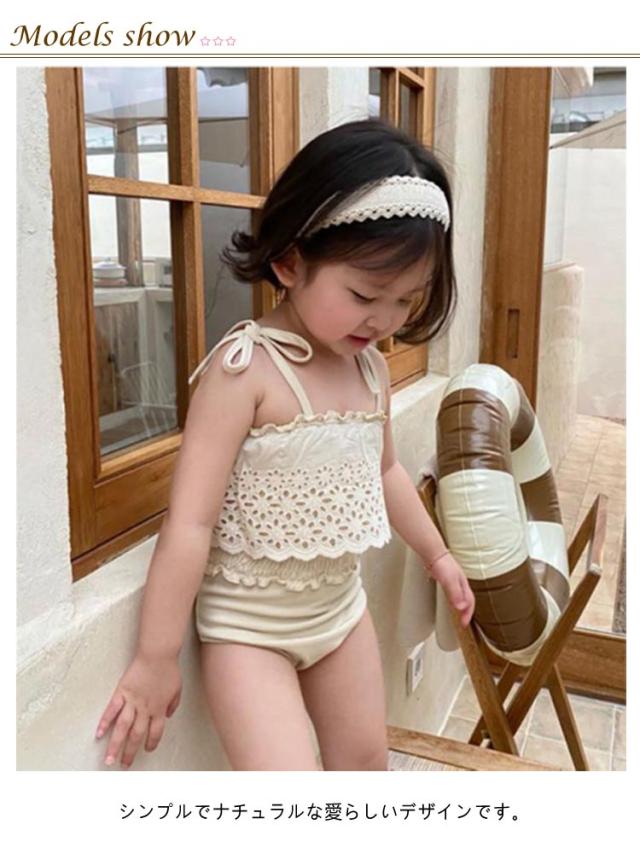 フリル水着 韓国ファッション 2点セット 女の子 ベビー水着 2点セット 女の子 75 スイムキャップ キッズ水着 水着 女の子 女児 ワンピース 子供用 キュート ベージュ プール授業 みずぎ 保育園