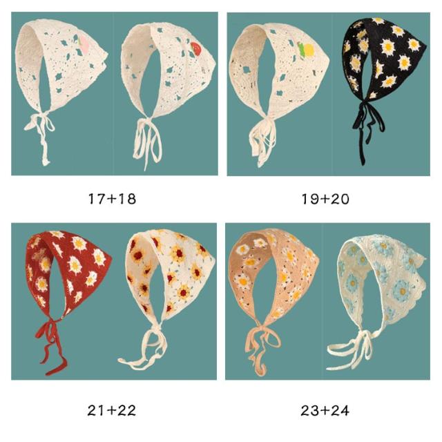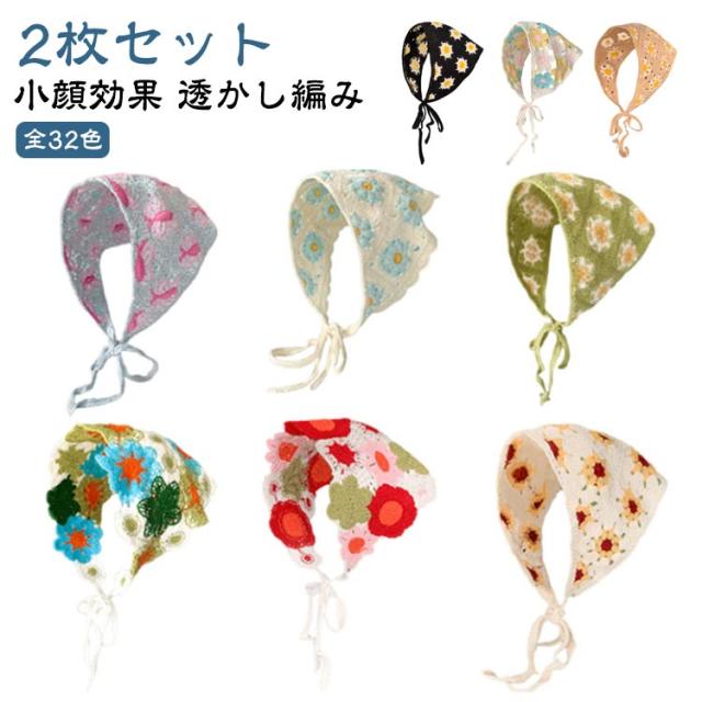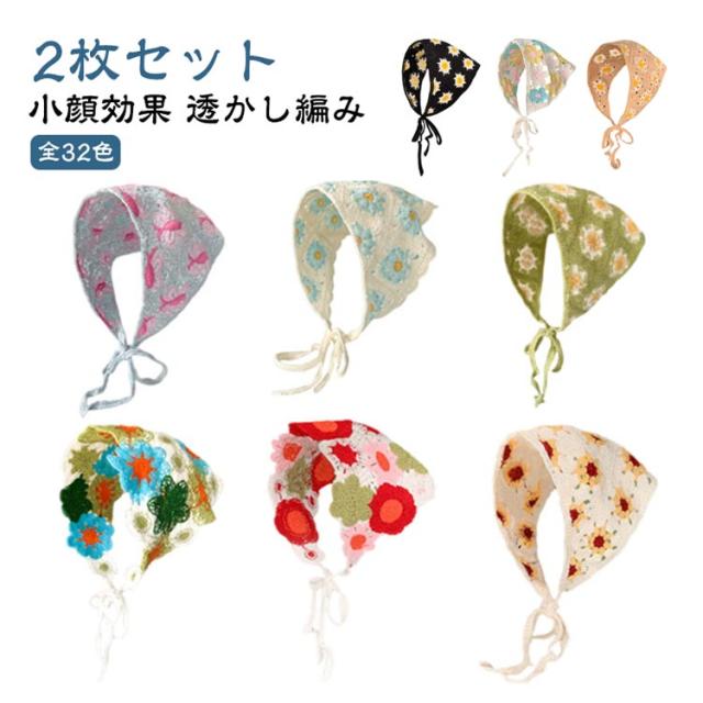 | 【2枚セット】【小顔効果】【全40色】 さっとかぶれて簡単楽々三角巾タイプのバンダナ。 透かし編みにしたデザインがとても繊細でお洒落です。 カチューシャの様な感じでも使ってもらえるのでこれからの季節にはぴったり! フランスのレトロな美しさを醸し出し、夏の服装に優雅さを加えるのに最適です。 コンパクトになりますので持ち運びにも便利。 | |