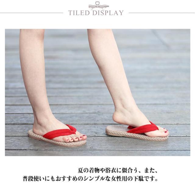 | 滑り止め柔らかいゴムの靴底を使用した軽量設計で、多種の部屋地面に適切。 機能性とデザイン性をあわせもつ快適スリッパです。 夏の着物や浴衣に似合う、また、普段使いにもおすすめのシンプルな女性用の下駄です。 | |
