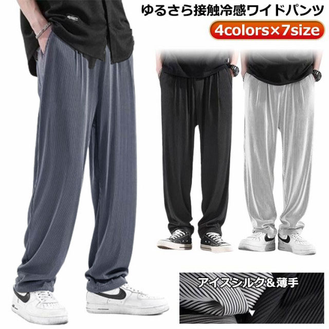 ストレッチパンツ 涼しい パンツ 涼しい アイスシルクパンツ メンズ 送料無料 冷感 夏パンツ ワイドパンツ 冷感 送料無料 ゆったり 速乾 長ズボン 冷感サラサラ イージーパンツ ダンス ゴルフ ワンマイルウェア ルームウェア カジュアルパンツ