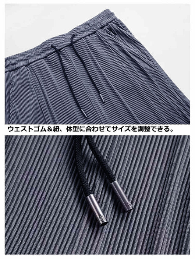 | 4colors×7size ゆるさら接触冷感ワイドパンツ。 さらっと爽快な穿き心地 シワになりにくい。 汗ばむ季節もさらっと爽快のアイスシルク素材使用。 ウェストゴム&紐、体型に合わせてサイズを調整できる。 凸凹感のあるリブ編み生地、シンプルすぎず、スタイリッシュでおしゃれな着こなしに。 | |
