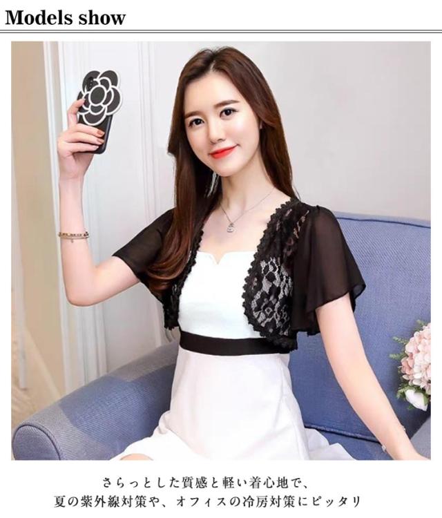 仕事用 透け彫り 羽織もの サマーカーディガン サマーカーディガン 冷房対策 通勤用 羽織 サマーニット UVカット 半袖 夏 薄手 羽織り 春 透け感 女性 夏 オフィス 体型カバー ボレロ トップス ボリューム袖 レース ゆったり カジュアル おしゃれ 白 黒 ナチュラル