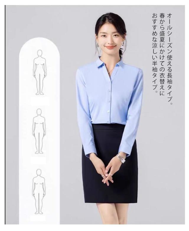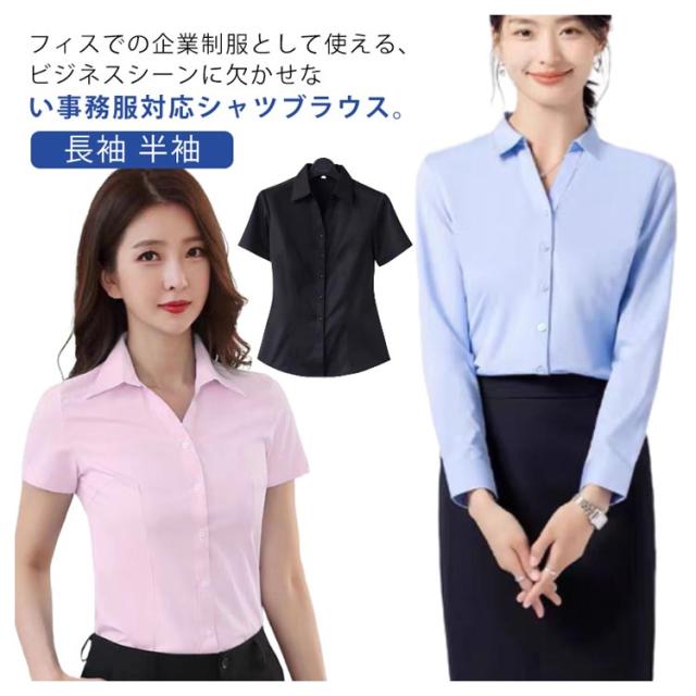 | フィスでの企業制服として使える、ビジネスシーンに欠かせない事務服対応シャツブラウス。 速乾加工で汗をかいてもベタつきにくく、不快感ゼロ。 ノーアイロン・ストレッチ素材でストレスフリーに。 オールシーズン使える長袖タイプ。春から盛夏にかけての衣替えにおすすめな涼しい半袖タイプ。 の方や冷房の気になる盛夏には、カーディガンをコーディネートするのがおすすめ。 | |