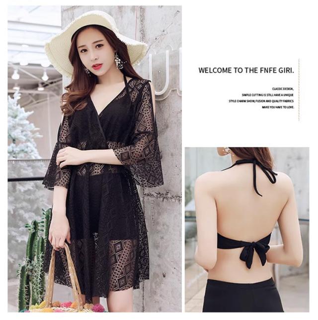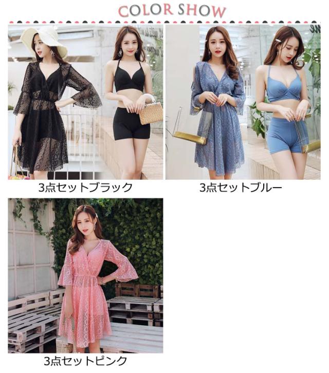 半袖 3点セット ワンピース マタニティ 花柄 かわいい 水着 妊婦服 Vネック 夏 海水浴 レース おしゃれ 大きいサイズ プール フラワー 体型カバー 夏
