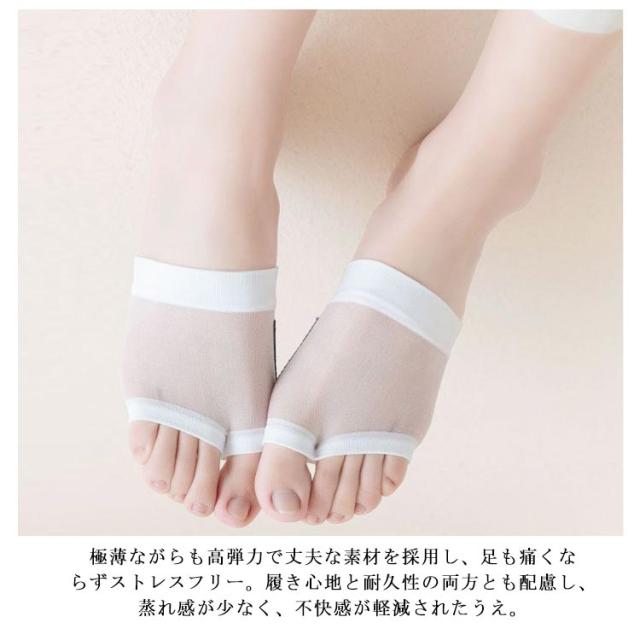 | 蒸れないメッシュデザイン、サンダルやミュールに最適指先なしハーフソックスです。 蒸れ防止にもなり、足もとの快適さを保ってくれます。 極薄ながらも高弾力で丈夫な素材を採用し、足も痛くならずストレスフリー。履き心地と耐久性の両方とも配慮し、蒸れ感が少なく、不快感が軽減されたうえ。 伸縮性も良く、ソフトな肌触りの履き心地・フィット感。 肌当たりが良く汗も吸う滑り止め綿底付き、パンプスを履いても圧迫感のない薄手生地を使用。 | |