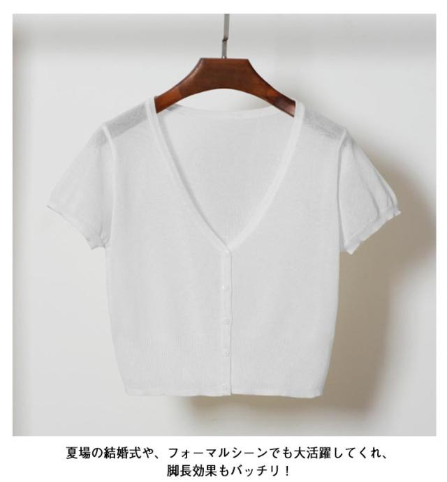半袖 ショート丈 結婚式 アイスシルク カーディガン 夏カーディガン ボレロ レディース 薄手 uvケア 日焼け 紫外線対策 ワンピース用 涼感 Vネック ボレロ ショートカーディガン サマーニット 冷感 オフィス