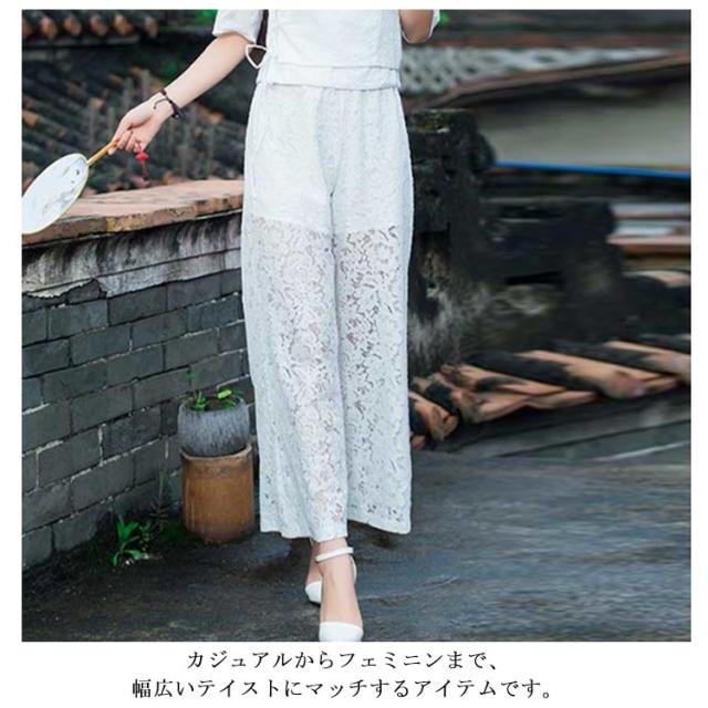 夏服 総レース 透け感 透け感 パンツ ロングパンツ 花柄レース レディース ワイドパンツ 裏地付き エレガント ペチコート 9分丈 ゆったり レース 体型カバー 春服 きれいめ シースルー かわいい 大きいサイズ 大きいサイズ M L XL 2XL 3XL
